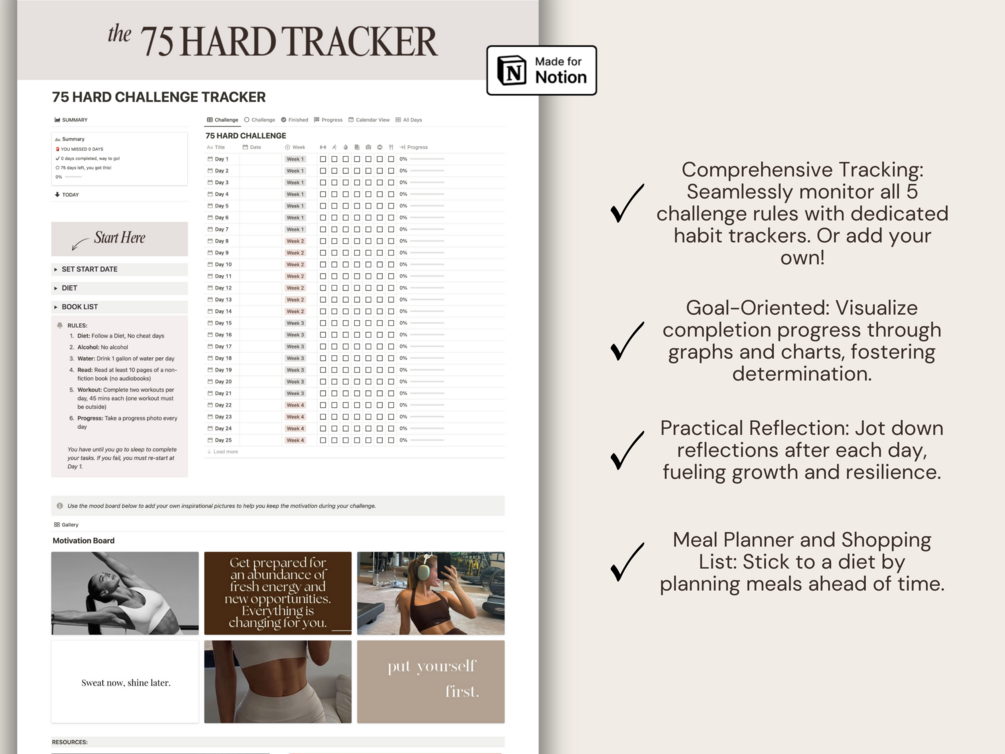 The Ultimate 75 Hard Challenge Notion Dashboard: Your Path to Unstoppable Health and Success!