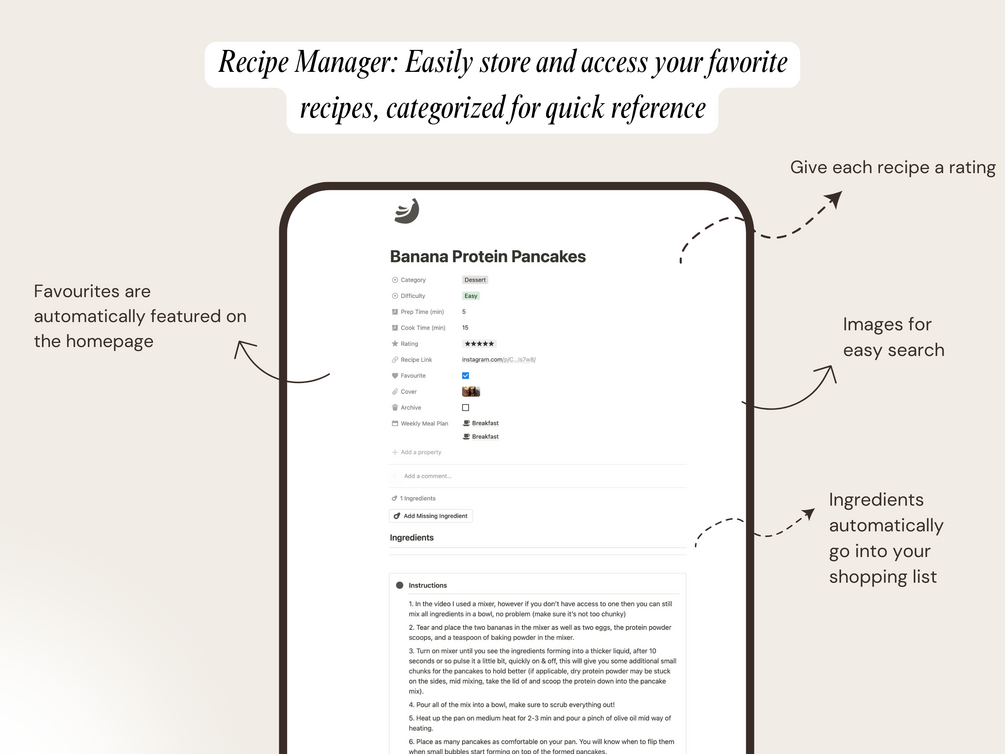 Say goodbye to meal planning chaos and hello to organized, healthy eating with our Notion Meal Planner!