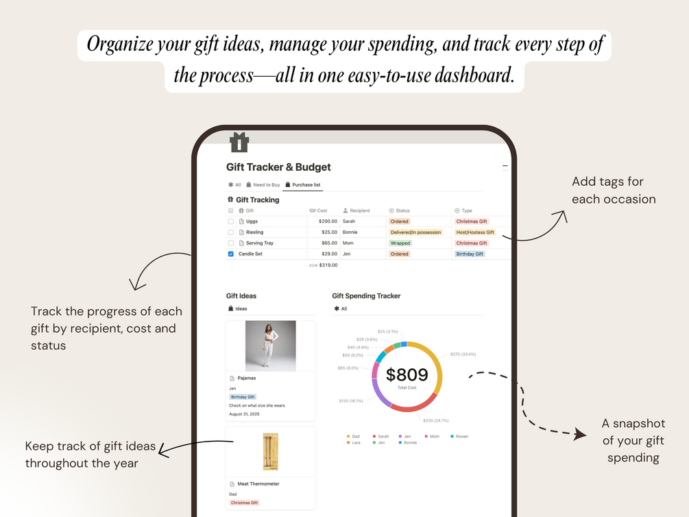 Gift Tracker Notion Template | Track Gifts, Budgets & Ideas