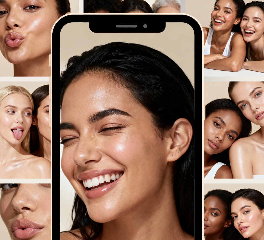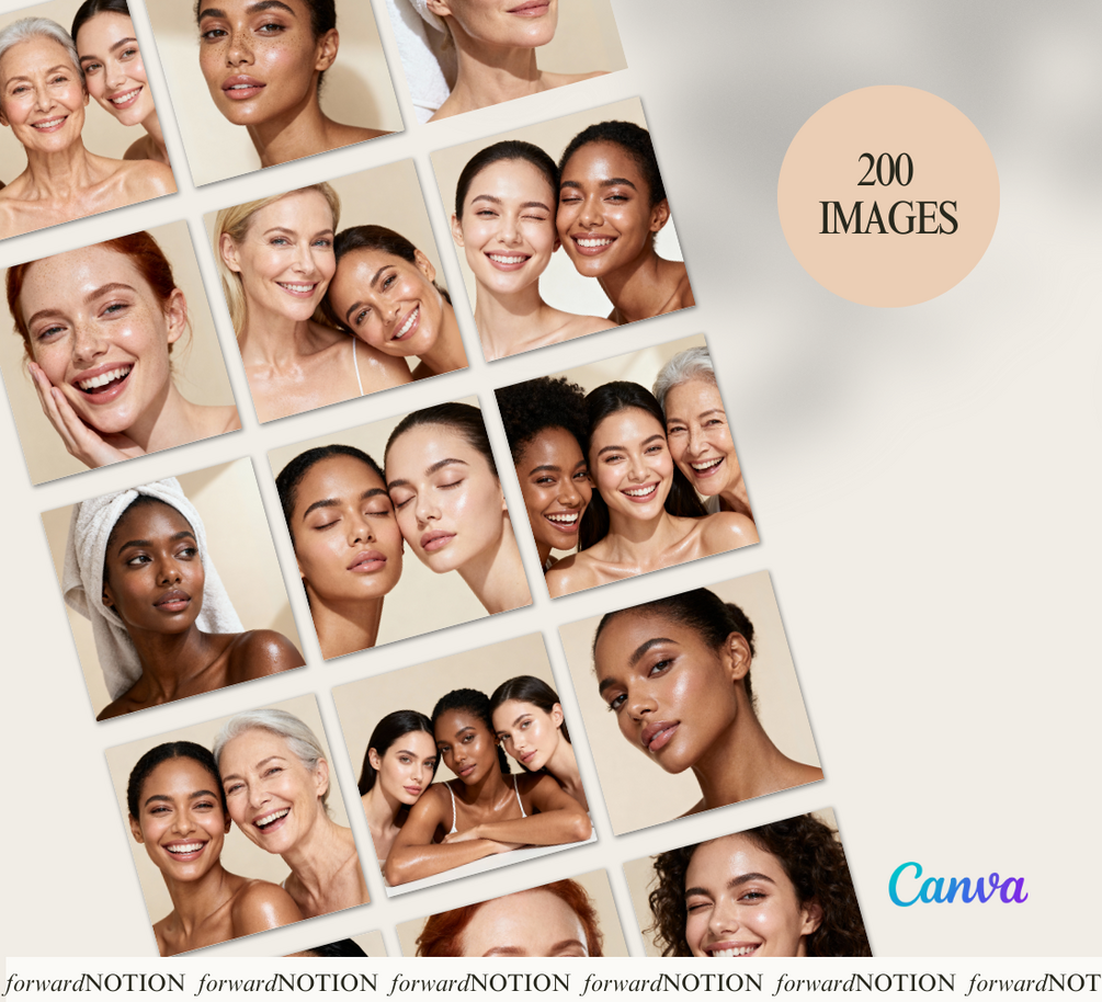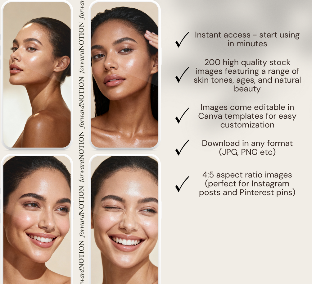 ✔️ 200 curated stock photos featuring diverse models and glowing, natural skin.