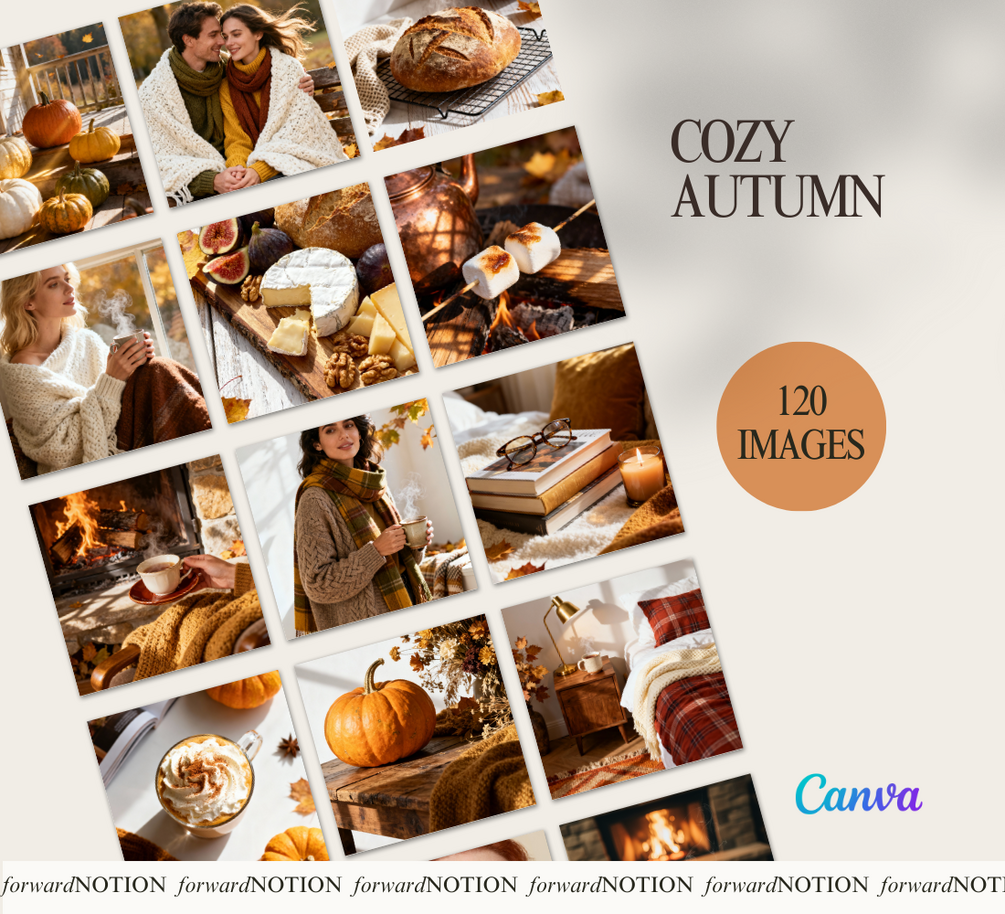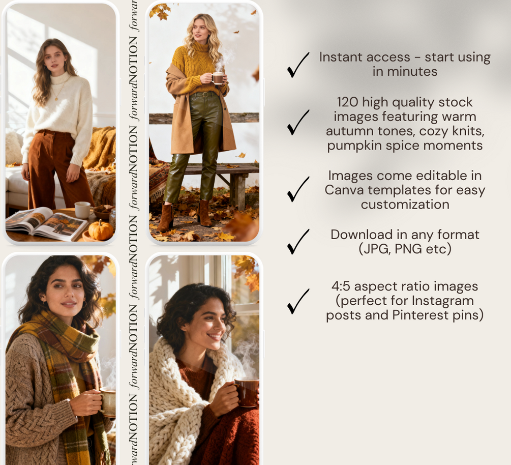 ✔️ 120 curated stock photos in a cozy fall aesthetic.
