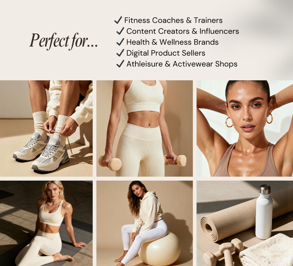 High-End Aesthetic – Editorial-style, neutral-toned fitness visuals for a timeless look.