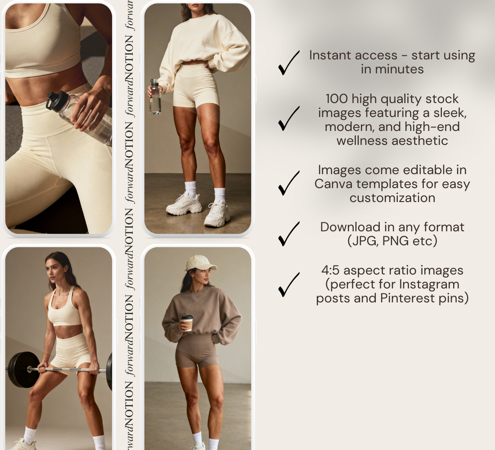Neutral Fitness Lifestyle Stock Image Bundle | Minimalist Workout, Activewear Aesthetic, High-End Gym & Wellness Photos | 100 Images
