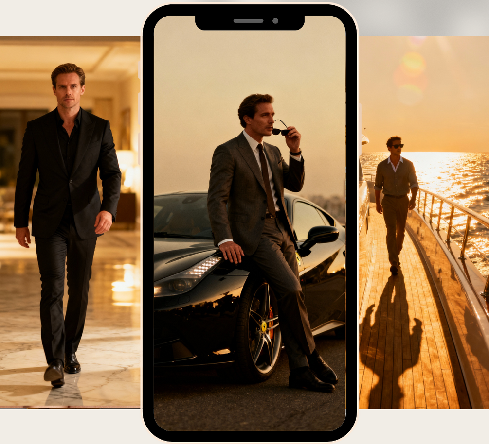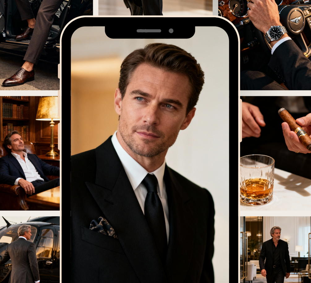 Luxury Aesthetic – Suits, cigars, fine drinks, cars, and more—crafted for a refined look.