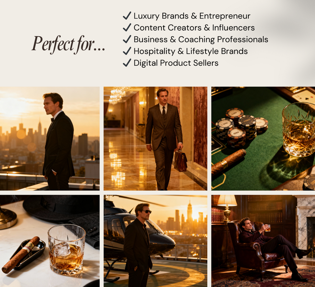 Perfect for entrepreneurs, luxury lifestyle brands, or content creators, this set adds an upscale, confident, and timeless aesthetic to your visuals.