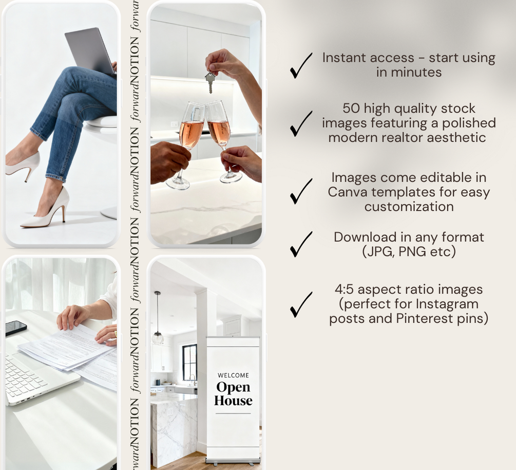 ✔️ 50 curated stock photos with a modern realtor & real estate aesthetic