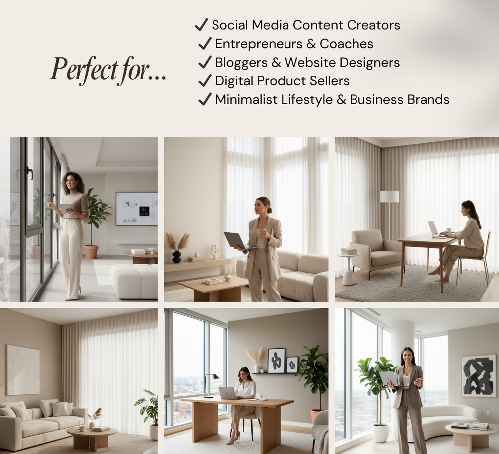 ✔️ Minimalist Lifestyle & Business Brands – Showcase professionalism with clean, neutral, and timeless visuals.